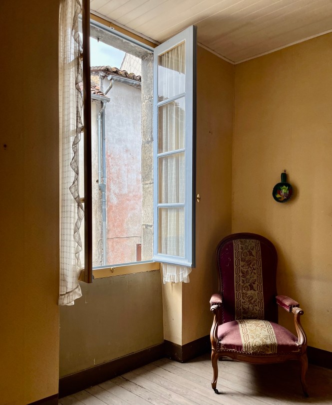 Who knew a magnificent piece of untouched old Cordes just 200 steps from our front door would immediately turn up? Such an opportunity! Unoccupied for 50 years but clean and sound, the owner had maintained it more or less as a memorial to her parents. Embossed wallpaper, plump feather beds, wool mattresses, lace curtains. And an old bakery.
