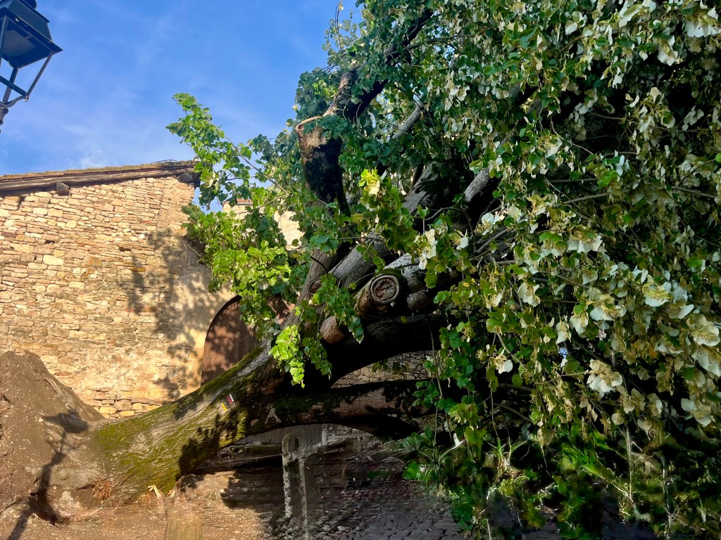 I didn’t know until morning that the huge linden tree at the Barbacane had fallen.