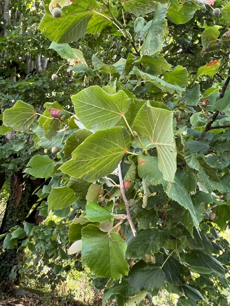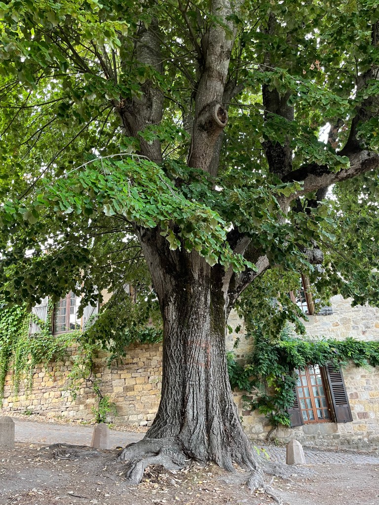 Après avoir rendu hommage à son corps déraciné, j’ai pris une petite branche et j’ai visité quelques autres grands arbres de Cordes. Le robinier derrière la bibliothèque m’a semblé bien triste. Il en va de même pour les marronniers d’Inde, qui souffrent eux aussi de la mineuse. Mais les autres tilleuls semblaient les plus touchés.