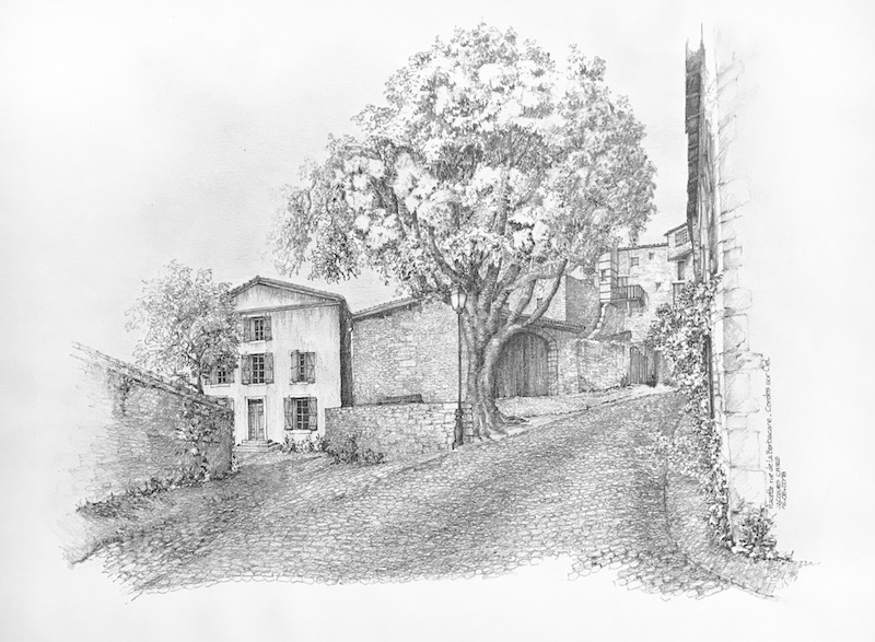 Les tilleuls peuvent être femelles ou mâles, mais leurs fleurs sont hermaphrodites. Cordes possède plusieurs arbres mâles – ce sont eux qui dégagent un parfum céleste à la fin du printemps – mais celui de la Barbacane était femelle et prêt à laisser tomber ses graines. Il était parfaitement formé, avec une belle cime ronde qui s’élevait au-dessus des maisons et offrait un cercle d’ombre profonde.