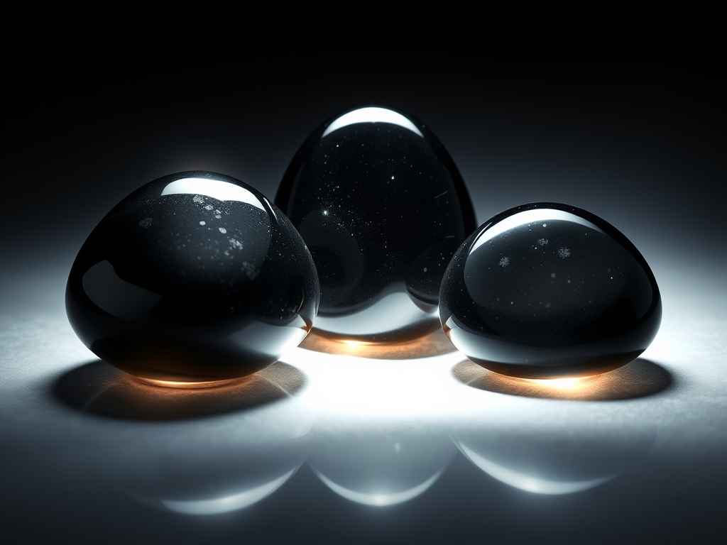 Ni la table ronde ni le petit tapis que je cherchais depuis des mois n’étaient là – on ne va pas chez Emmaüs pour des choses précises de toute façon – mais dans le rayon cuisine, dans un lourd plat à bonbons en verre, se trouvait une collection de pierres noires polies. Il y en avait une vingtaine, de différentes sortes, certaines que l’on pouvait tenir pour voir un reflet de lumière, d’autres opaques, de différentes formes et tailles mais toutes magnifiquement polies, allant de la taille d’une bille à celle d’une noix.