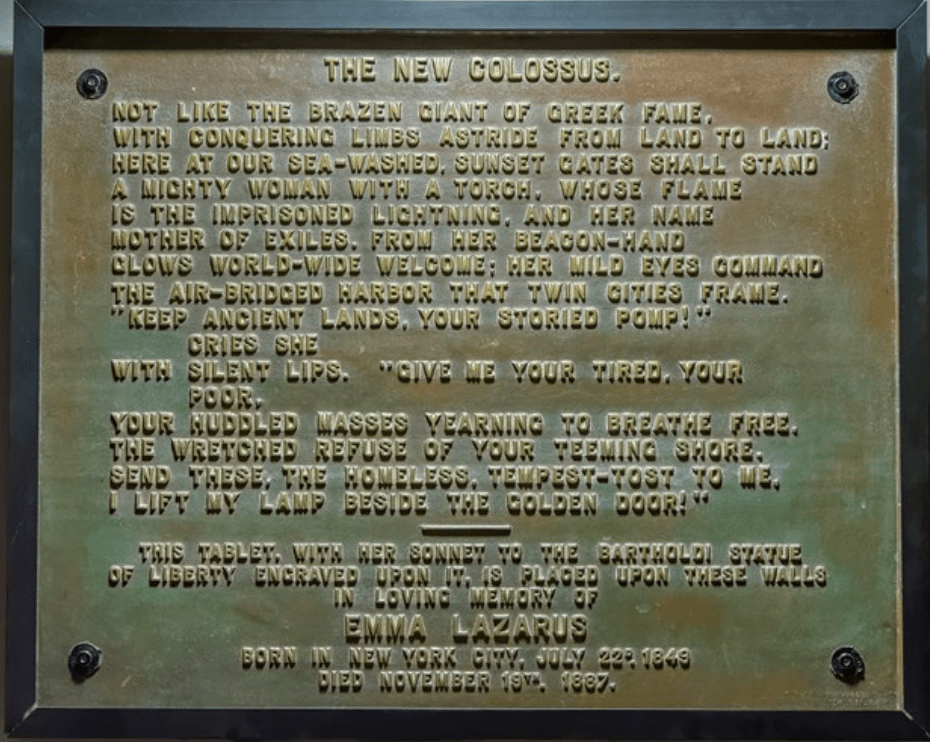 And then there was Emma Lazarus’s poem, The New Colossus, which was written for the statue.