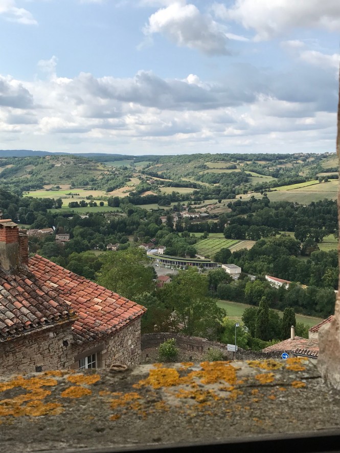 Our neighbor, Lilliane, who comes from Paris every summer, tells us the best restaurant in the village is at the Hostellerie du Vieux Cordes. Rochelle, Tom, and I sat on the patio there, shaded by a 300 year old wisteria, until a thunderstorm chased us inside. Even inside it was dramatic. As I took the last bite of my oeufs brouillé au truffes (the English menu called them “blurred eggs with truffles”) one of the tall casement windows blew open with a bang, startling everyone in the room.