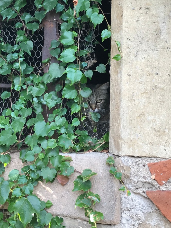 There’s also a bistro we like, Le Petit Café, with a dog called Luigi who’s in love with Mocha. This isn’t as endearing as one might think. Luigi is very passionate. He recently followed us to the post office with such enthusiasm that Mocha and I had to take refuge until the post mistress phoned the café to send someone to pick Luigi up. No one could come in or out of the post office until he was gone. Now one of us goes to the café in advance to ask them to hold onto Luigi while we’re there or when passing by.