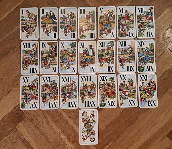 The last three chapters that I’d written were all pretty dark— the excerpt I published here a few weeks ago is part of one of them—so I decided to add in a lighter one. I gathered my characters in Gert’s parents’ sitting room for New Year’s Eve, had Gert put on some popular music with funny lyrics—it was good fun to do that research—and pretty soon everyone was singing and dancing. They couldn’t dance for all the hours before midnight though, so I figured they could play games. More interesting research. No parlor games popped up, but card games were popular. The first card games from that time and place that came up in my search were played with tarot cards. Good idea. Let the characters play the game and afterwards draw a card. Or better, I’d draw a card for each of them.