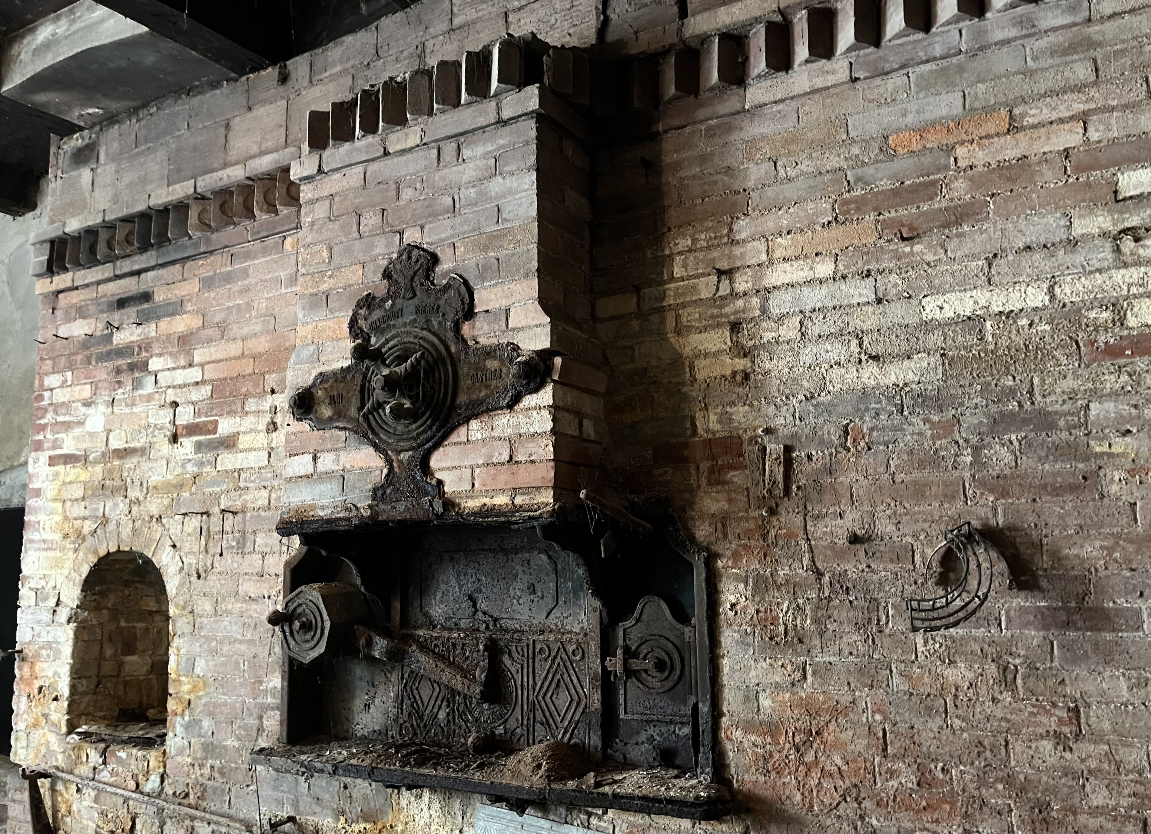 But it would be possible for someone to live in that house almost as is. Some plumbing would probably have to be done, but the first floor has 25-year old decent wiring and lighting. The bedrooms are delightful as they are, and so is the upstairs bathroom. A temporary kitchen of some sort could be set up, though the old wood and gas cookers, gems themselves, are there.
