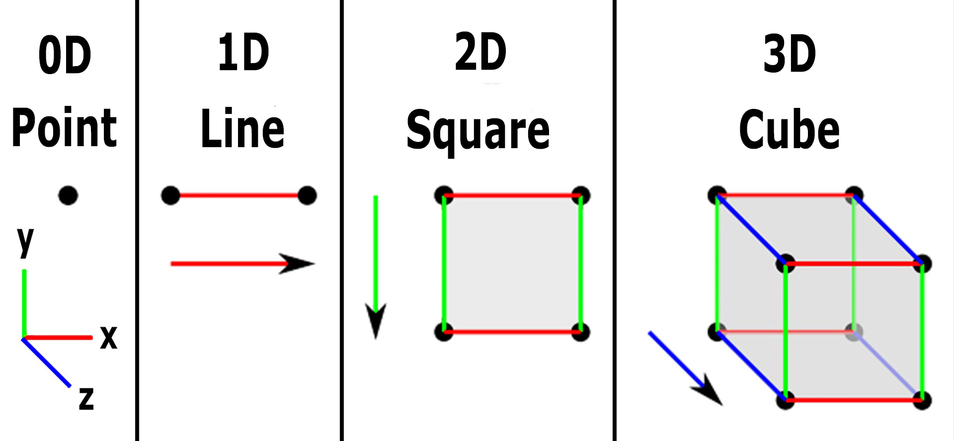 If the point moves, a line exists. The line moves into a square, and the square moves to become a cube. Move the cube, and time exists. But beyond that?