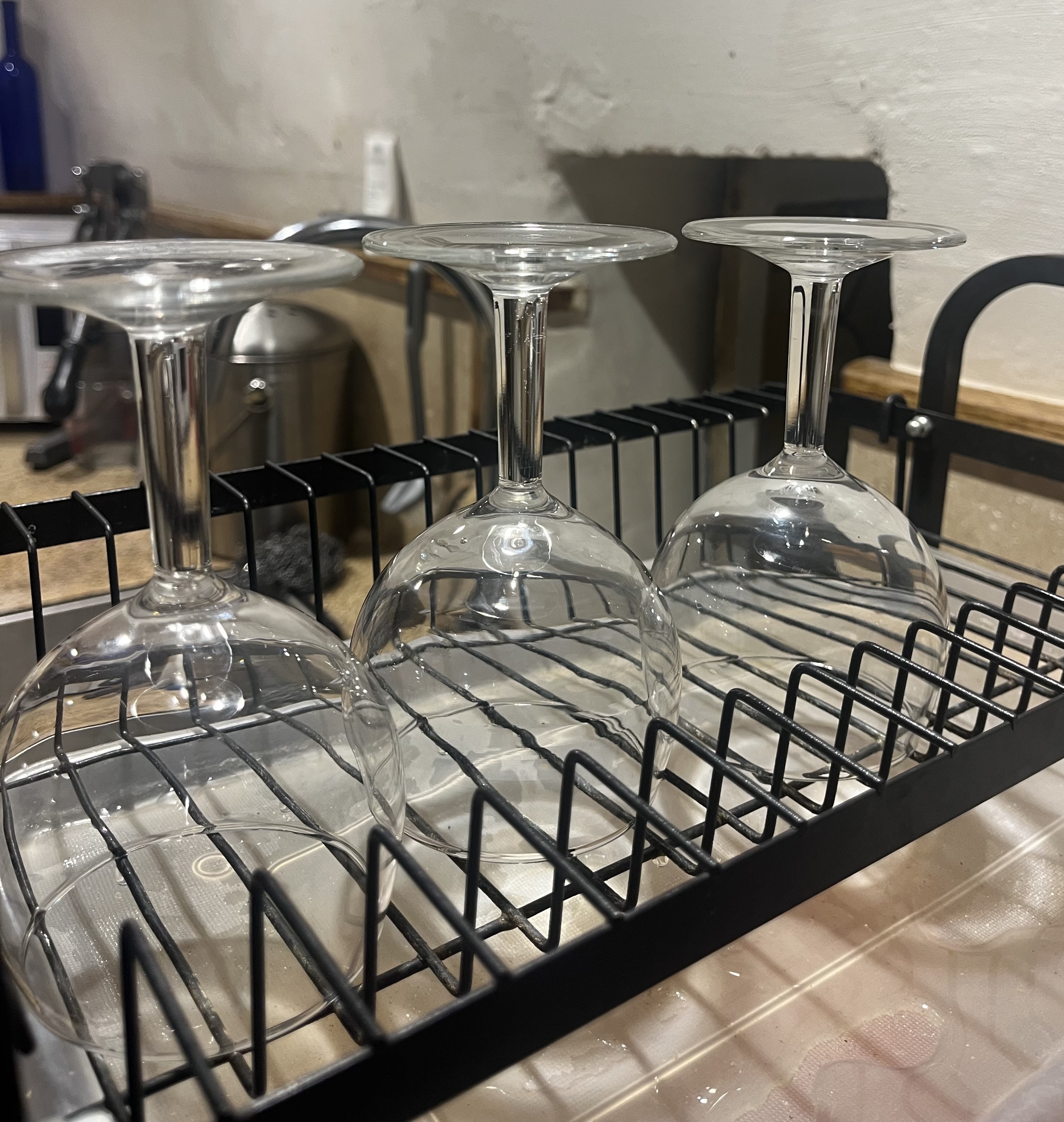Il semblait que ma chance extraordinaire était terminée – jusqu’à ce que je réalise que nous avions trouvé une machine à laver pour notre ami, et que j’étais rentré à la maison avec quelque chose, aussi : trois verres à vin et une histoire.