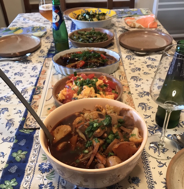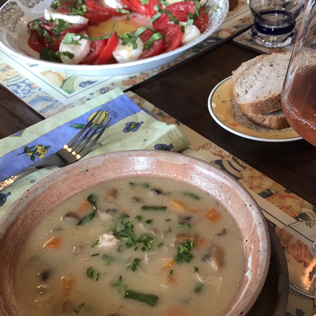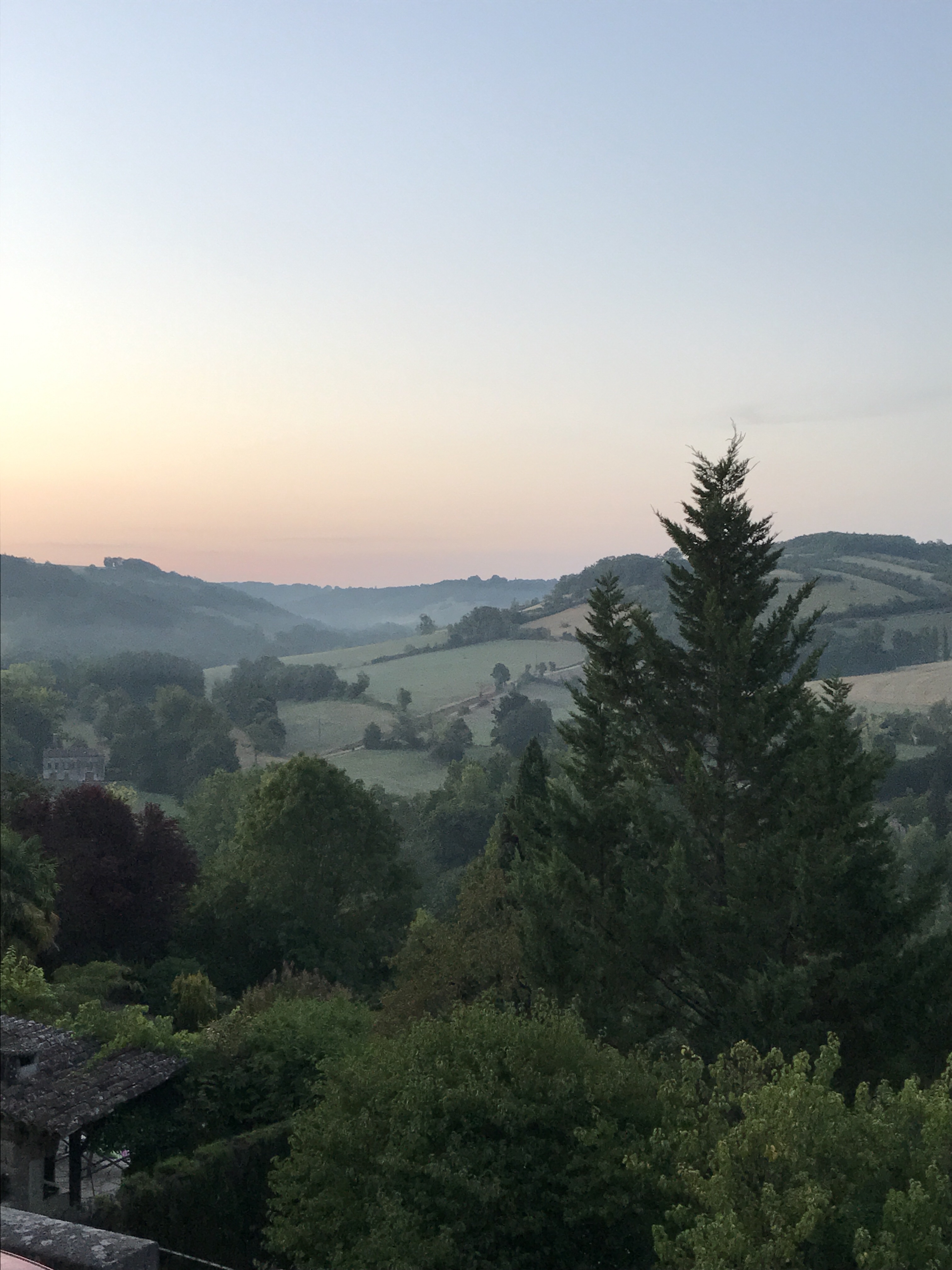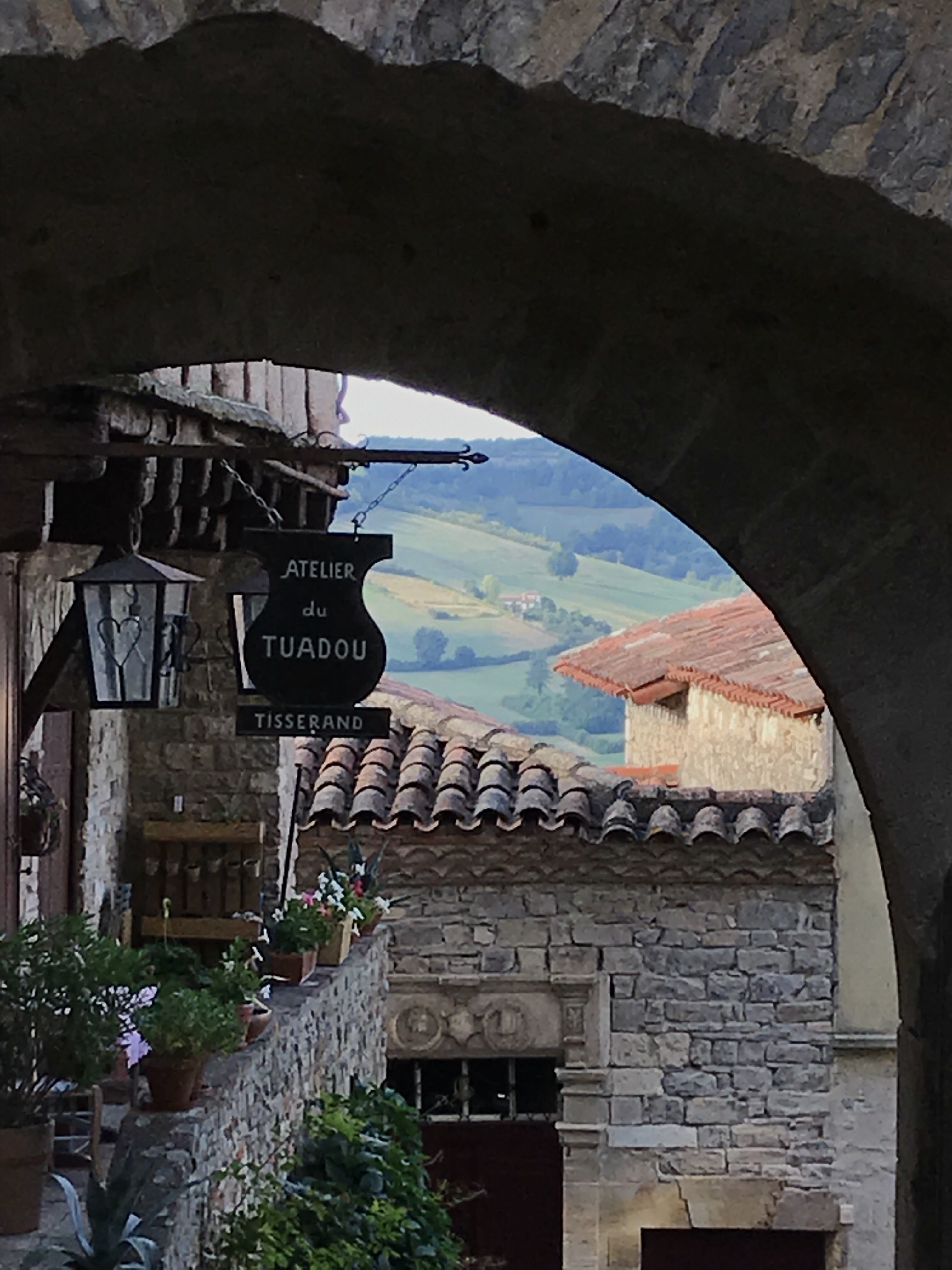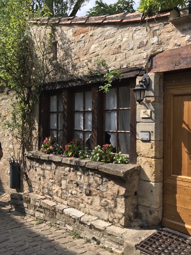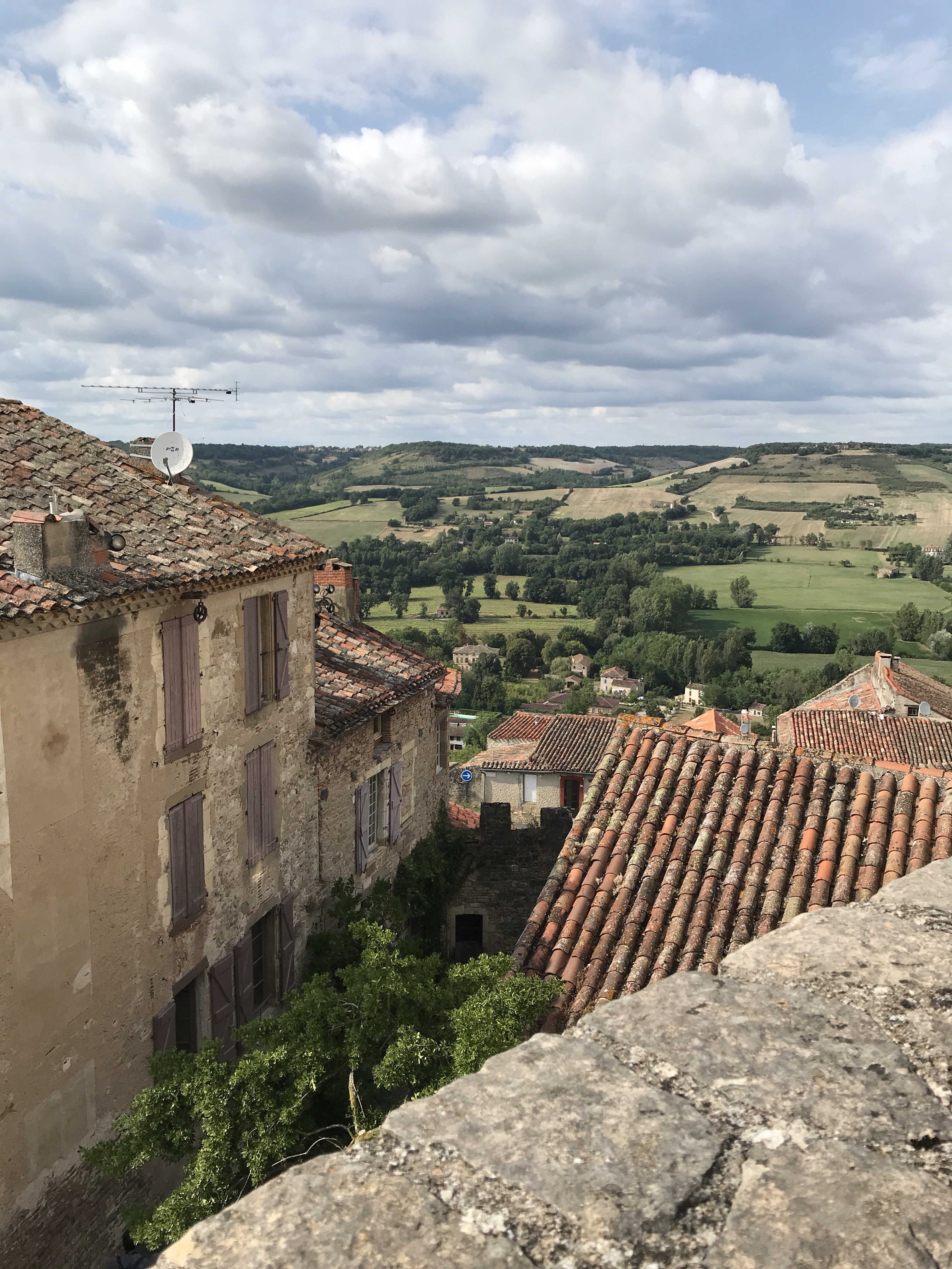 Our neighbor, Lilliane, who comes from Paris every summer, tells us the best restaurant in the village is at the Hostellerie du Vieux Cordes. Rochelle, Tom, and I sat on the patio there, shaded by a 300 year old wisteria, until a thunderstorm chased us inside. Even inside it was dramatic. As I took the last bite of my oeufs brouillé au truffes (the English menu called them “blurred eggs with truffles”) one of the tall casement windows blew open with a bang, startling everyone in the room.
